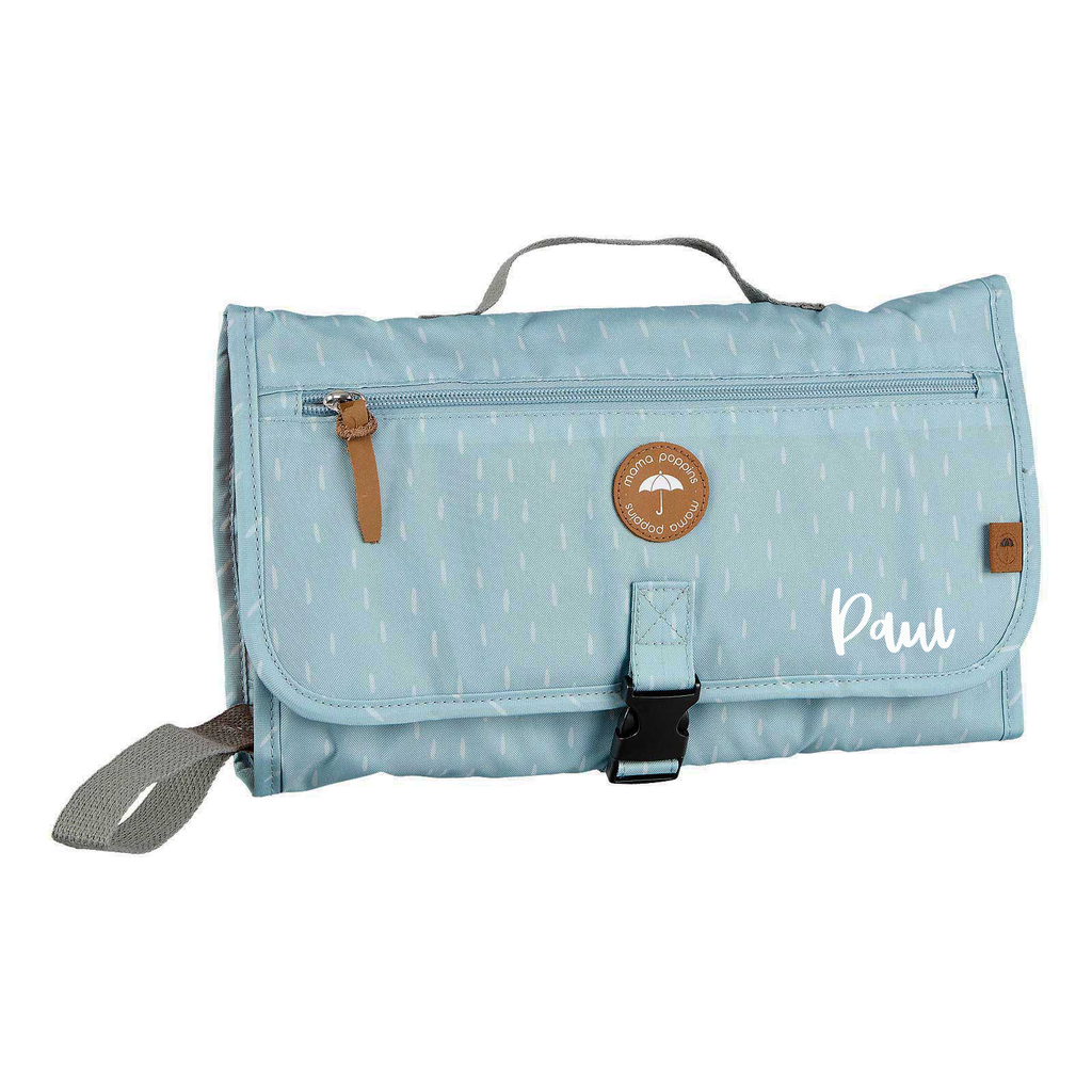 Wickelunterlage für Unterwegs mit vielen Fächern für Feuchtücher, Windeln, Pflegecreme und mehr. Inkl. Kopfkissen (Blau)